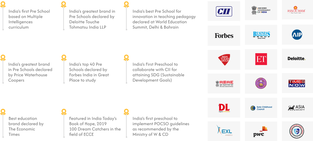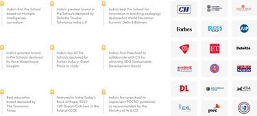 Multiple Intelligence based infrastructure incorporates various activities based on music, art, movement, nature, social and cultural, logical to engage children and promote child centric learning environment. The infrastructure also helps and promotes children to recognise and support their multiple strengths and abilities.
