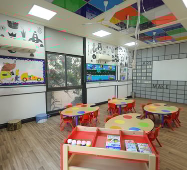 Each domain of a child's development is thoughtfully supported and enriched through a wide range of interactive methods, including guided play, conceptual and creative activities, story narration, pretend play, and multimedia-based learning experiences. At Golden Bells, we believe in building strong foundations for lifelong learning through meaningful, experiential engagement.