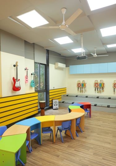 Multiple Intelligence based infrastructure incorporates various activities based on music, art, movement, nature, social and cultural, logical to engage children and promote child centric learning environment. The infrastructure also helps and promotes children to recognise and support their multiple strengths and abilities.